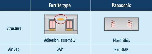 In contrast, the Panasonic Industry metal composite power inductor has a monolithic design by pressed metal powder around the copper wire. The monolithic structure leads to a much higher vibration resistance, up to 30G - depending on the series.