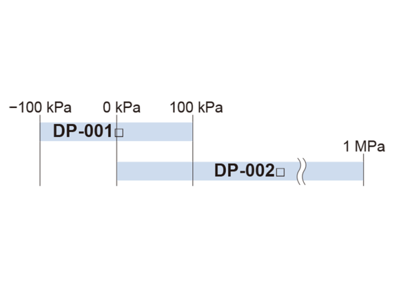 - DP-002 (vysokotlaký typ) je ideální pro aplikace, kde je třeba zkontrolovat referenční tlak. Lze jej také použít pro jednoduché sací aplikace