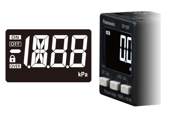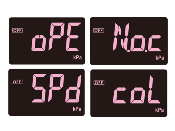 Barvu displeje lze vybrat z červené nebo bílé podle činnosti výstupu. Vzhledem k tomu, že zobrazení režimu podrobného nastavení je růžové (nelze změnit), lze stav senzoru tlaku snadno rozpoznat podle barvy displeje.