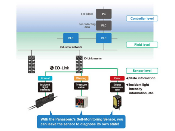 Technologie IO-Link umožňuje nepřetržitý přenos i zpracování dat a také řízení senzoru. To umožňuje uživatelům implementovat prediktivní údržbu a sledovat provoz ve strojích a montážních linkách. Zpracování velkého množství dat vyžaduje, aby uživatelé investovali know-how a čas. Společnost Panasonic vyvinula funkci autodiagnostiky pro každý typ senzoru. Tato funkce odesílá data senzoru přes IO-Link do procesní sběrnice vyšší úrovně, čímž přímo informuje o stavu senzoru. Tímto způsobem se sníží množství produkčních dat a rozsah práce potřebné k analýze dat.