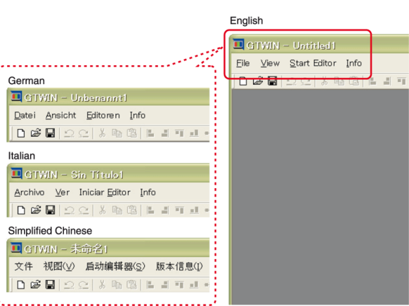 Mehrsprachige Menüs und Dialogfelder
