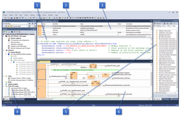 Control FPWIN Pro ist eine von Panasonic entwickelte Programmiersoftware (für Windows 10 und 11), die der weltweiten Norm IEC 61131-3 entspricht. In zahlreichen Bibliotheken finden Sie fertige Funktionen und Funktionsbausteine, mit denen Sie einen Großteil unseres Know-how für Ihre Programme nutzen und so bei Programmierung und Fehlersuche viel Zeit sparen können.