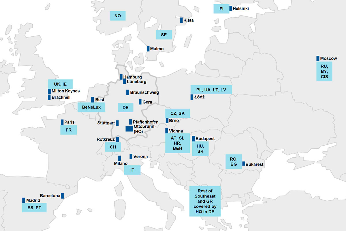 Cifras y datos En el centro de lo que hacemos Ventas consolidadas de más de 1000 millones de euros A finales de marzo de 2021 26 oficinas comerciales Más de 100 grupos de productos Aprox. 1.000 empleados 15 divisiones 30 nacionalidades 15 países Nuestras oficinas en Europa Cifras de Panasonic Corporation Ventas consolidadas de más de 54 200 millones de euros Ventas consolidadas después de la eliminación y ajustes basados en el tipo de cambio promedio de 2020/21: 1€ = 124JPY 243 540 empleados Trabaje para Panasonic en todo el mundo. 529 empresas consolidadas Incluida la matriz Capital social 259 200 millones de yenes A 30.09.2021 Invirtieron el 5,8 % de sus ventas netas en I&D Ocupa el 7. puesto en el ranking de las mejores marcas globales de Japón 2025 elaborado por Interbrand