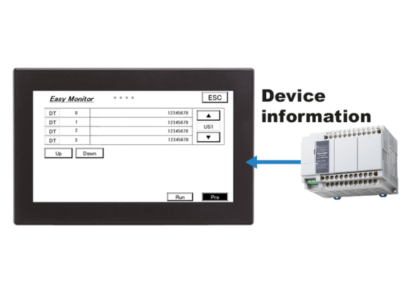 La GT707 permite comprobar de un vistazo, el estado de todos los dispositivos conectados. El monitor del equipo le permite ver el estado de un PLC, por ejemplo. Sin necesidad de ordenador. Simplemente seleccione la opción de monitorizar el equipo desde el menú del sistema. Sin necesidad de programación manual.