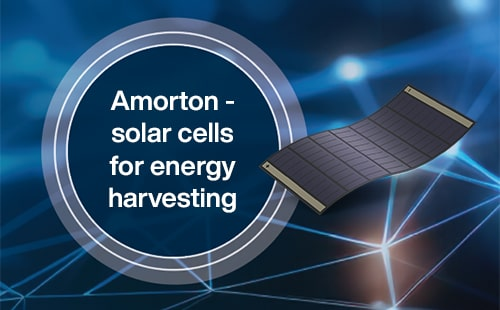 Designed for energy harvesting in both indoor and/or outdoor environments, new Amorton solar cells (a-Si:H) feature enhanced efficiency (10-15%) and a sleek, modern design measuring just 0.11mm – 1.6mm in profile.