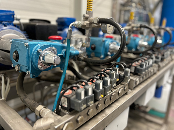 In his approximately 25 years at Autorette, Gerrit has seen the technology of the installations evolve, always with simplicity in mind. Customers should have minimal worries about their machines. Fewer components mean more stability. Less fuss means more reliability. For instance, the installation has a float tank at the back and a check valve at the front to prevent overflow. The supply and mixing of water and cleaning agents use the venturi principle, which relies on suction through low pressure, eliminating the need for additional pumps for shampoos. Customers need to understand our machines and maximize their efficiency. For example, the installation starts via electric valve relief, temporarily reducing system pressure. This is energy-efficient and allows for lighter motors compared to frequency control, offering significant savings, especially for customers with multiple wash boxes.