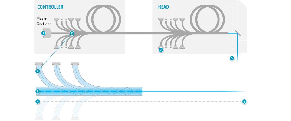 I sistemi laser in fibra sono speciali sistemi laser a stato solido pompati a diodi. Il nucleo della fibra, drogata con il minerale raro Itterbio (Yb), è il mezzo attivo.