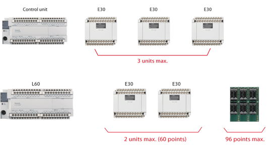 Sterowniki L40 i L60 można rozbudowywać przy użyciu modułów rozszerzeń FPX/FP0R. Można podłączyć maksymalnie 3 moduły rozszerzeń FPX (wer. 3) osiągając maksymalną liczbę 150 we/wy. Z wykorzystaniem adaptera FP0 (AFPX-EFP0) można użyć maksymalnie 3 modułów rozszerzeń serii FP0R (moduły cyfrowe i analogowe, termopary lub jednostki sieciowe) oraz dwóch modułów rozszerzeń FP-X, zwiększając możliwości rozbudowy do 216 we/wy.