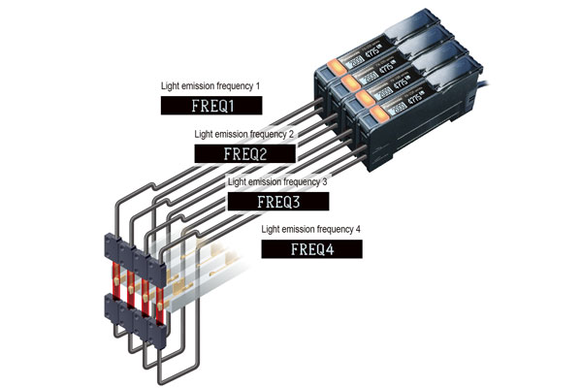 Up to 4 sensors can be mounted side by side. To prevent mutual interference, you can set a different light emission frequency for each sensor.