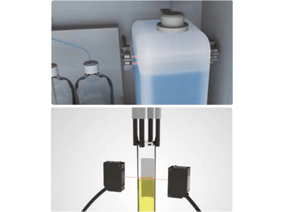- Reliable detection of liquids with a thru-beam type