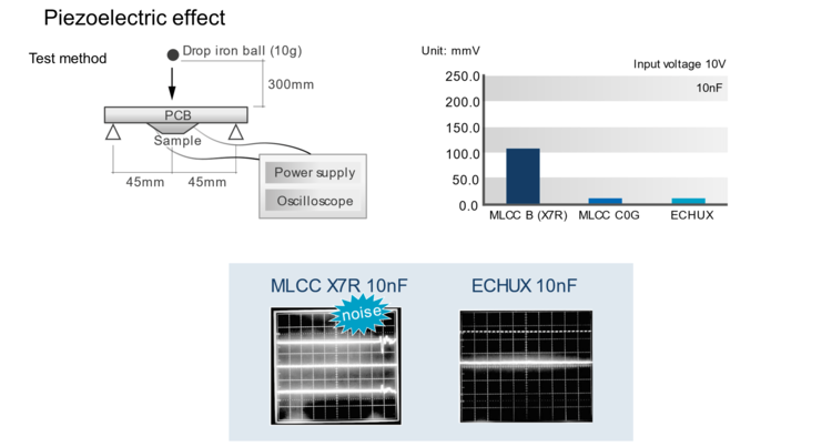 | MLCC C0G | TiO2/CaZrO3 | 20 ~ 300 | +/- 5% | 0.003% | 0.6% |