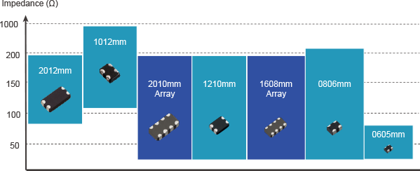 Panasonic offers a wide range lineup (small size type and Array type ) for common mode noise suppression