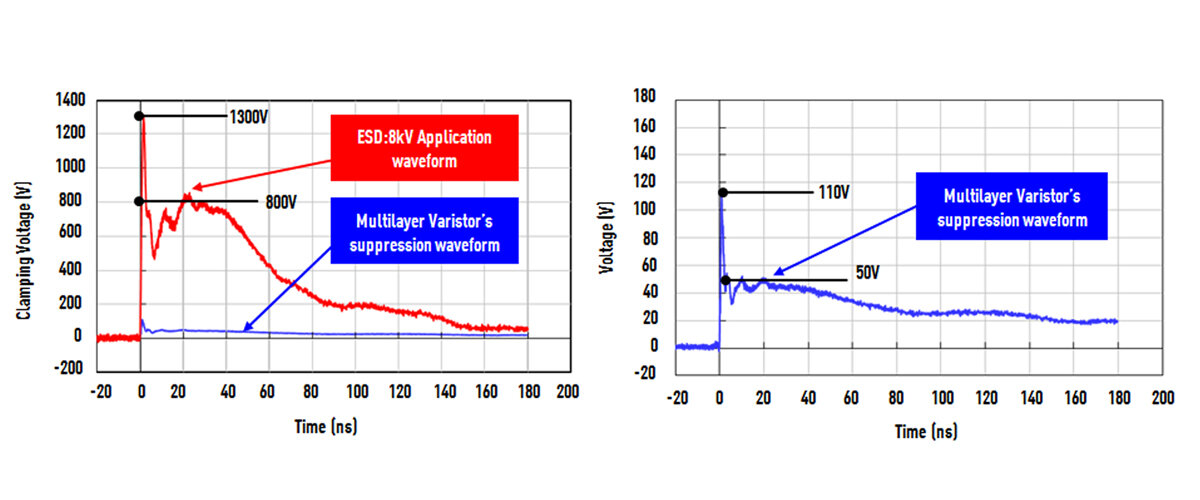 Multilayer varistor is used in small electronic devices, TVs and AV equipment, including smartphones as a countermeasure component for ESD from the human body.