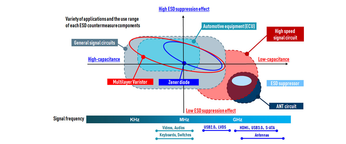 Types and applications of ESD countermeasure components
