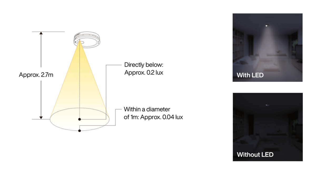 - Especially when fire breaks out at night, anxiety and fear make it difficult to make calm decisions. When a fire is detected, an LED lights up. It softly illuminates the surrounding area and supports quick evacuation of all residents.