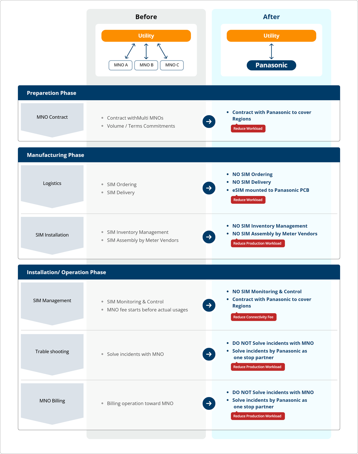 Panasonic will support the all the duties from contract to SIM management.